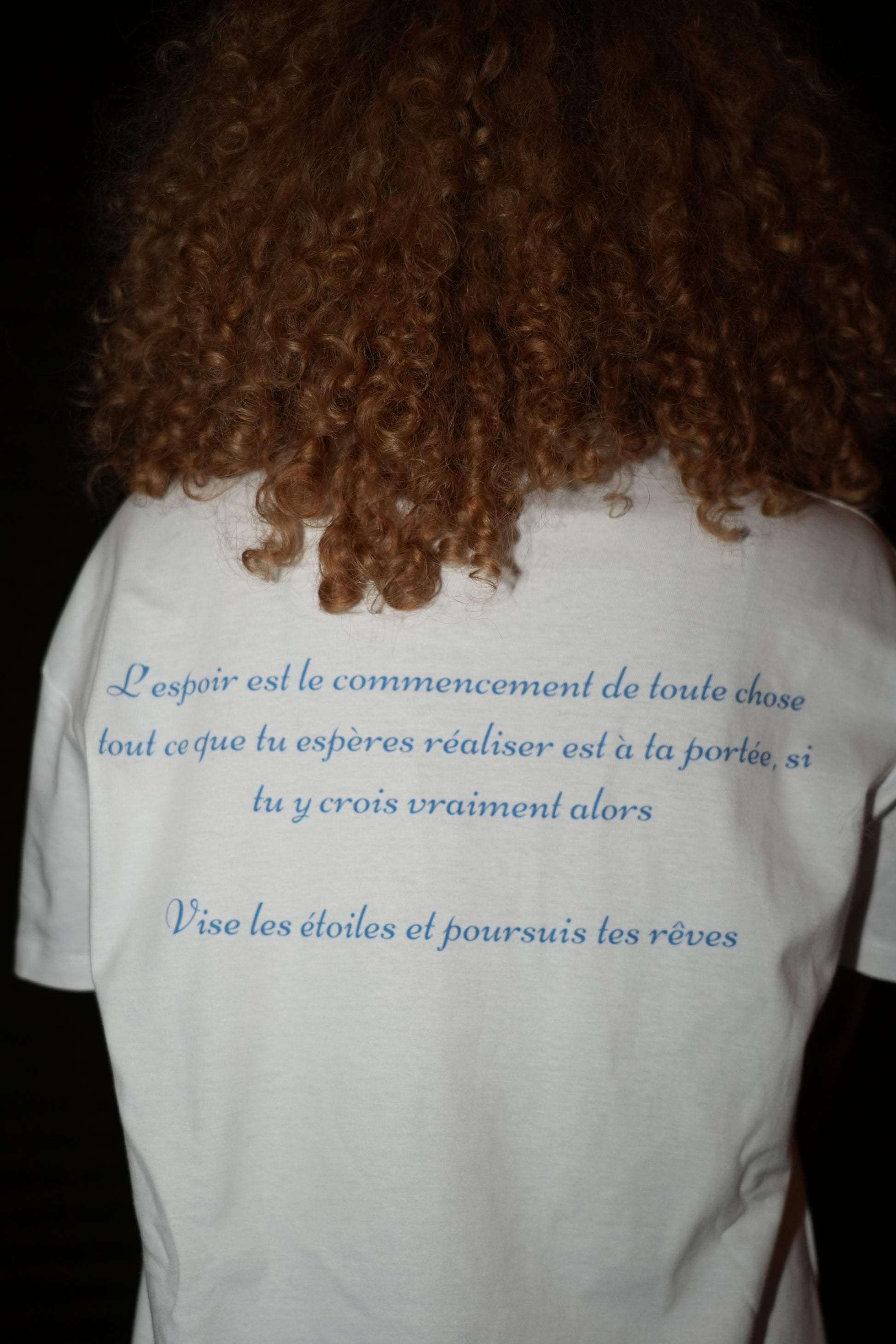 T-SHIRT BLANC À IMPRESSION, COUPE DROITE. 100% COTON.